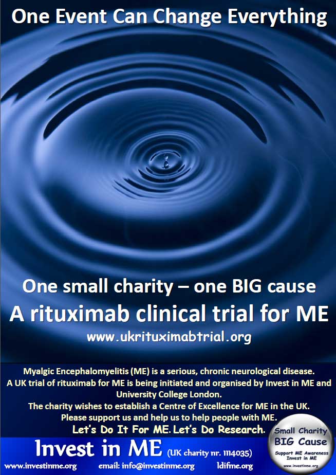 The B-cell research projects leading to the UK clinical trial of rituximab trial was initiated and organised by IiMER since the 2015 BRMEC5 and IIMEC10 international conference which the charity organised on 30/31 May 2013 and which was announced on our website on 6th June 2013. We are doing this to further advance biomedical research into ME and provide hope for some to regain their lives, and for others to benefit from improved knowledge about this disease.